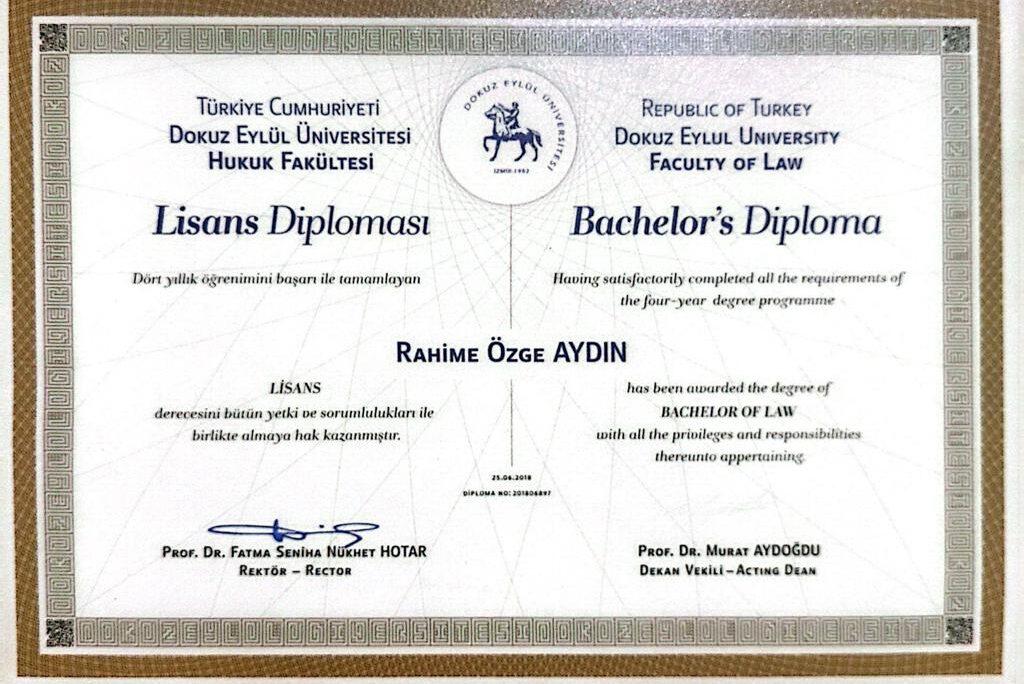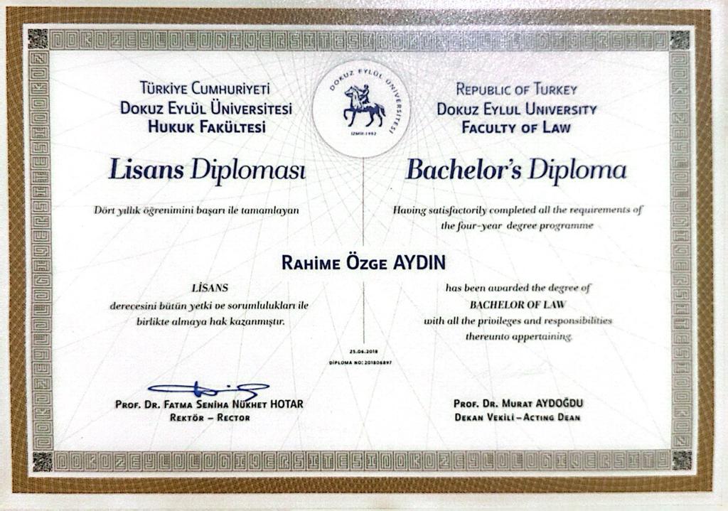 Avukat Rahime Özge Aydın, Dokuz Eylül Üniversitesi Hukuk Fakültesi’nden 2018 Yılında Mezun Olmuştur. İlk Olarak Diyarbakır Barosu’na Bağlı Olarak Serbest Avukatlık Yapan Aydın, 2020 Yılından Itibaren İzmir Barosu Mensubudur. Başta İzmir Ili Olmak Üzere Yurtiçi Ve Yurtdışında Bulunan Müvekkillerine Şeffaflık Düsturu Ile Hızlı Ve Çözüm Odaklı Yaklaşarak Hukuki Danışmanlık Ve Avukatlık Hizmeti Vermektedir. Gayrimenkul Hukuku, Sözleşmeler Hukuku, Aile Hukuku, Iş Hukuku, Kira Uyuşmazlıkları Ve Arabuluculuk, Tüketici Hukuku, Bilişim Hukuku, Fikri Ve Sınai Mülkiyet Hukuku, Idare Ve Vergi Hukuku, Ceza Hukuku Başlıca Faaliyet Gösterdiği Alanlardır.